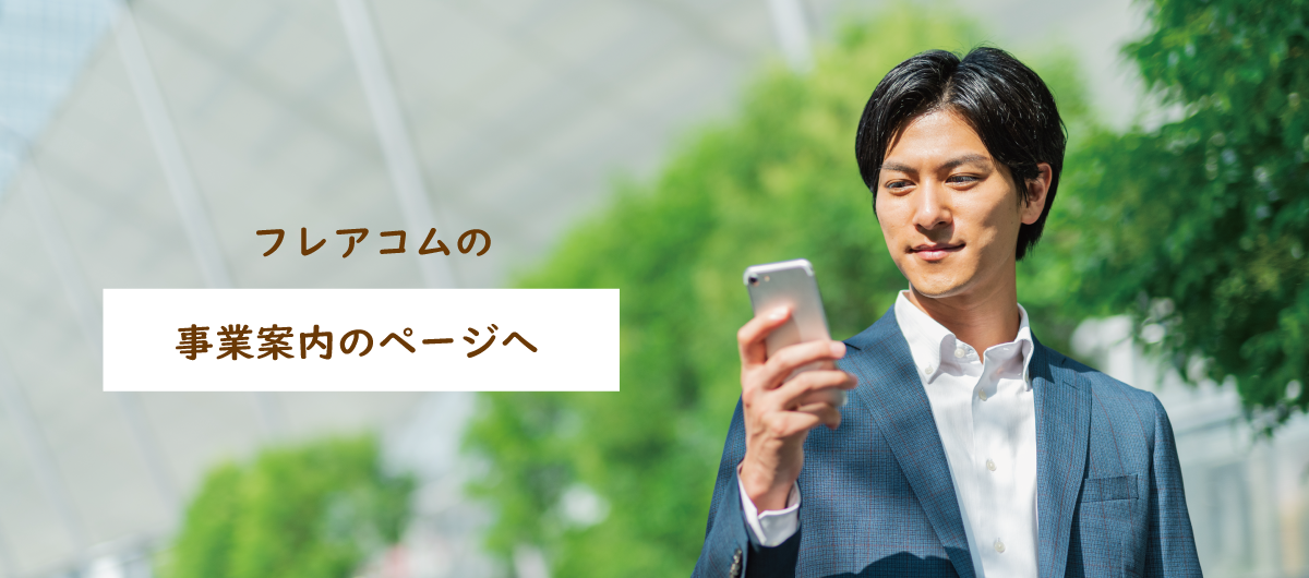 フレアコムのコンテンツサービスで事業が豊かになり、また、あらゆるつながりを駆使して未来へとつながるツールを提供します。フレアコムの経験豊かなスペシャリストが自信を持って提案いたします。